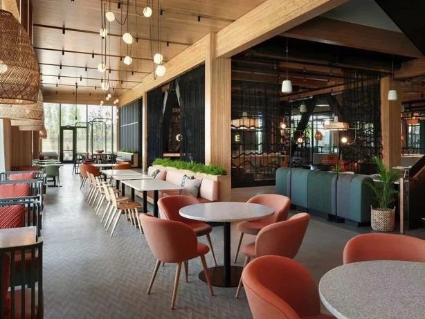 谷歌办公楼,位于加利福尼亚州森尼韦尔,公共空间采用大木结构。